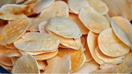 干洋芋片不僅是土家人喜愛的零食,更是承載著大多數人兒時的記憶。干洋芋片是把洋芋切成厚片,然后在太陽底下曬干后再用油炸而成,最后灑上一點白糖,香酥甜脆。
