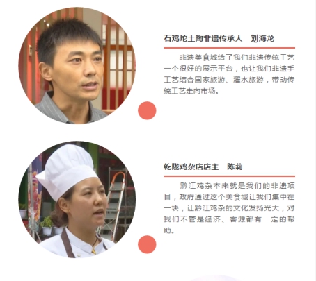 非遺美食城立足黔江,面向武陵山區(qū),搜集、挖掘、開發(fā)特色美食、民族工藝、非遺醫(yī)養(yǎng)、紅色文化等非遺資源,把黔江雞雜、渣海椒、土陶、根雕等非遺特色文化多維度融入到旅游中。在這里,游客不僅可以品味到不同風(fēng)格的美食,還能感受到傳統(tǒng)手工藝的獨(dú)特魅力。