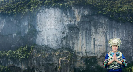 景區(qū)內(nèi)坐落著一座巨大的觀音摩崖像,這尊觀音像像高123米,寬69米,是目前世界最高的觀音雕像。觀音手執(zhí)凈瓶柳枝,端坐蓮臺(tái),指灑圣水,面目和祥。傳聞對(duì)著觀音像虔誠(chéng)的許下心愿,就能實(shí)現(xiàn)。