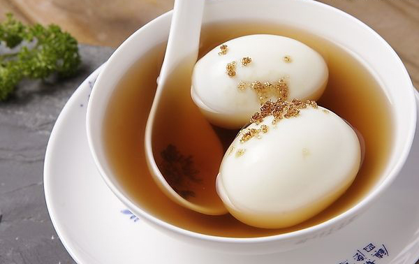 用油炸花生米,核桃仁、黃豆、米泡、苞谷泡等,打上三四個雞蛋,放入煮開的油茶內(nèi),味道鮮花,具山村風味。